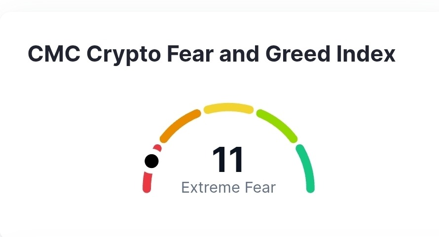 The fear-greed index which is a widely used metric for gauging overall crypto market sentiment is deep in extreme fear territory.